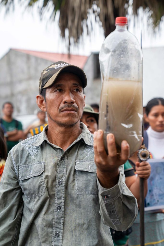 The hearing was rescheduled for 30 June, but just a few days before that date, the judge suspended it for personal reasons and set a new one, this time overlapping with activities already planned by FCUNAE. This prompted a protest in front of the judicial complex of Francisco de Orellana, where community representatives, joined by leaders of other Indigenous nationalities, allied organizations, and their legal team, brought evidence of the oil contamination in the river caused by repeated spills in their territory, the most recent occurring on 16 June.