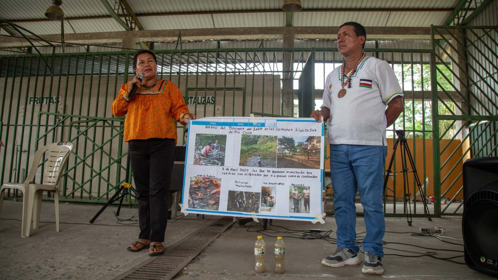 For three hours, the intercultural dialogue unfolded. They spoke about the deep relationship they hold with the river, and how that connection is now almost gone because the river is “sick and sad.” They spoke about Kichwa food systems and how they are being lost because their main crops no longer grow as they once did due to soil contamination: “Yuca and plantain don’t taste the same.” “Bocachico (a fish) almost never appears in the river now; we can’t feed ourselves with fish, and they expect us to change our diet to canned tuna and noodles,” they said.